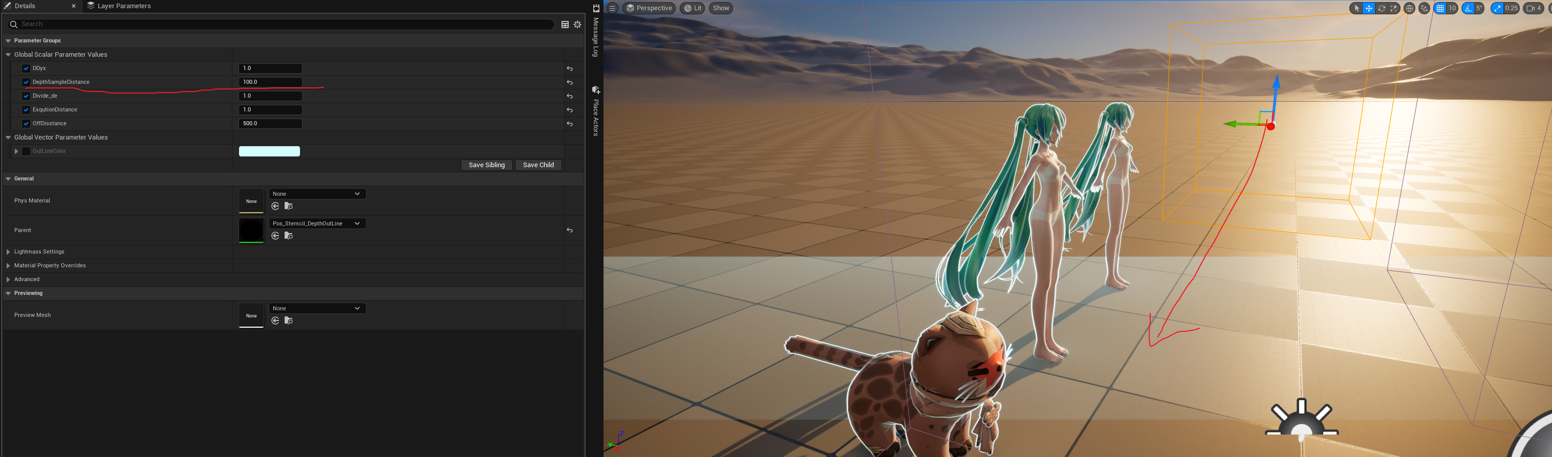 后期描边本质是通过UE渲染时产生的各种SceneTexture来获取模型的轮廓,在使用像素偏移产生描边效果